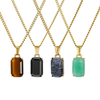 सुरुचिपूर्ण आयताकार जेड पत्थर बाघ आंख मैलायन प्राकृतिक पत्थर पेलेंट नेकलेस जेम्स्टोन स्टेनलेस स्टील गहने