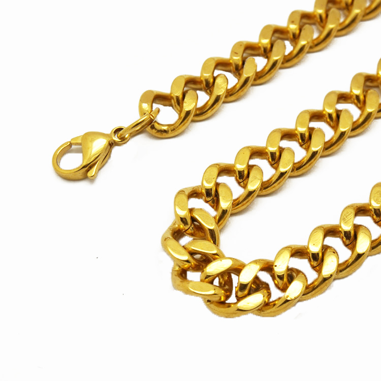 قلادة سلسلة كوبية سميكة مطلية بالذهب مقاومة للماء غير مشوهة سلسلة 316L حبل 18 حلقة ربط مجوهرات للرجال