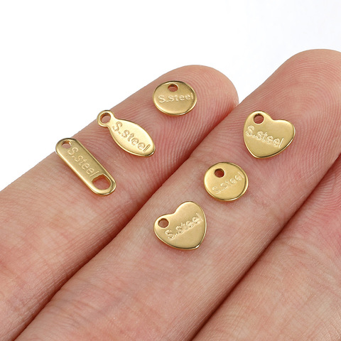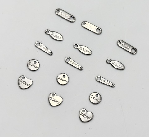 Moq ต่ำปรับแต่งโลโก้ทองเงินสแตนเลสแกะสลักเลเซอร์เสน่ห์น้ำตาขยายแท็กโซ่สำหรับเครื่องประดับ